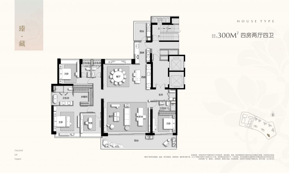 3 号楼(城市景观楼王):全新推售,2 梯 2 户。300 ㎡四房四卫,南北通透、双阳台, 超 8 米面宽客厅,超 12 米面宽阳台,一线公园景观,看国贸夜景。