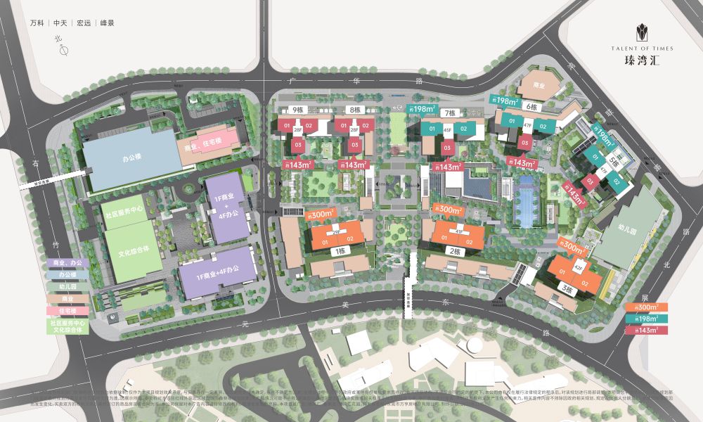 四、商业与公园资源:民盈国贸中心、汇一城商圈、莞香印巷、康帝酒店、洲际酒店、会展 酒店、环球经贸中心等商业拥簇;旗峰公园、中心公园、元美公园、中心广场等公园环绕;