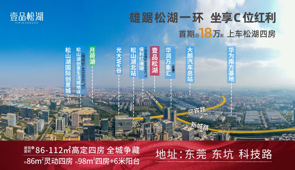 “2主干道”——科技路与东坑大道之上、无缝连接新城路、生态园大道、富民北路,10分钟极速畅达松山湖、大朗、寮步等区域。