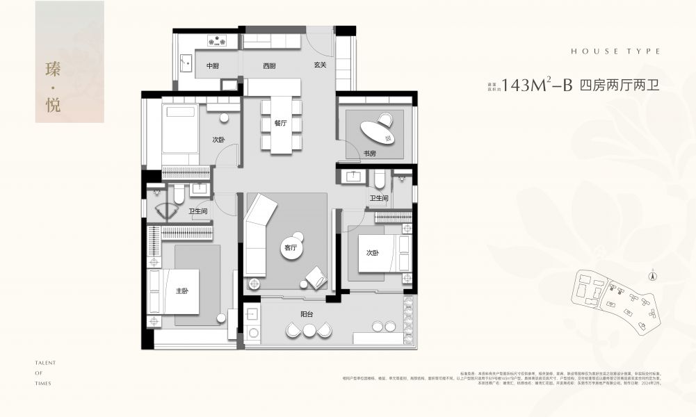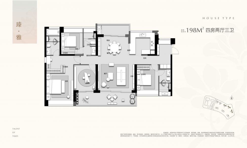 6 号楼(园林景观楼王):少量余货在售,3 梯 3 户。143 ㎡四房两卫,飞机户型,无过 道设计,利用率高;198 ㎡四房三卫,南北通透、双阳台,超 5.5 米面宽客厅。