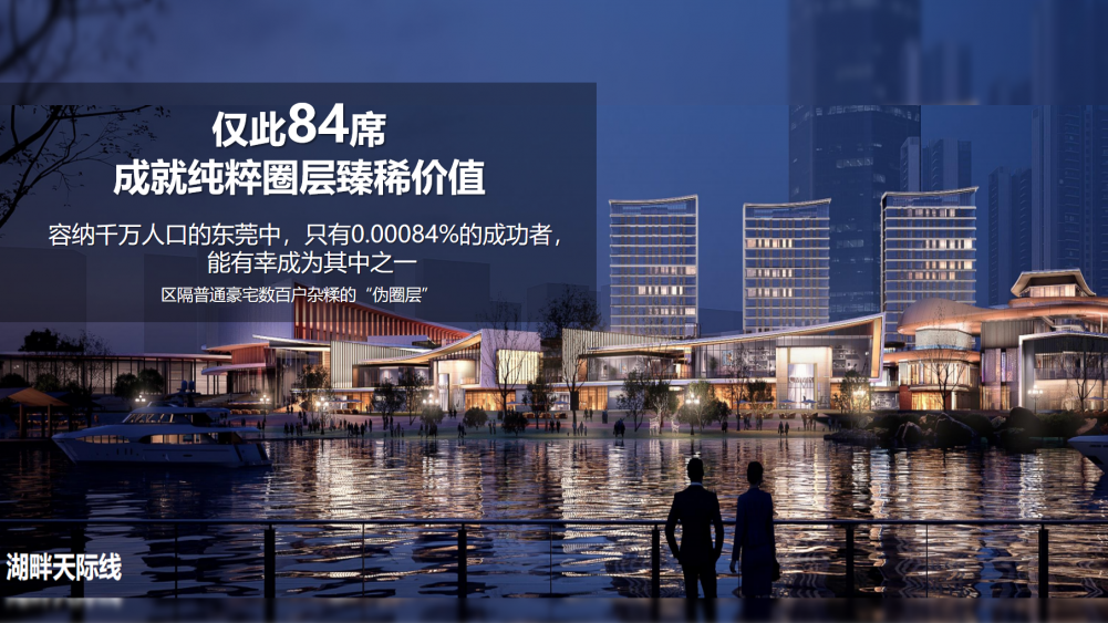 一面俯瞰 50 万㎡自然湖景,另一面俯瞰松山湖 CBD 繁华城景,前后无任何遮挡,坐拥城市最好的视野。