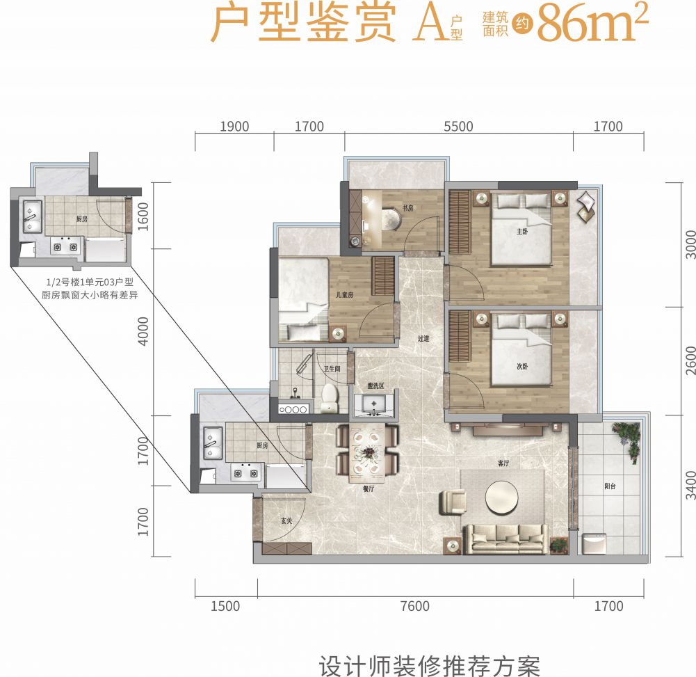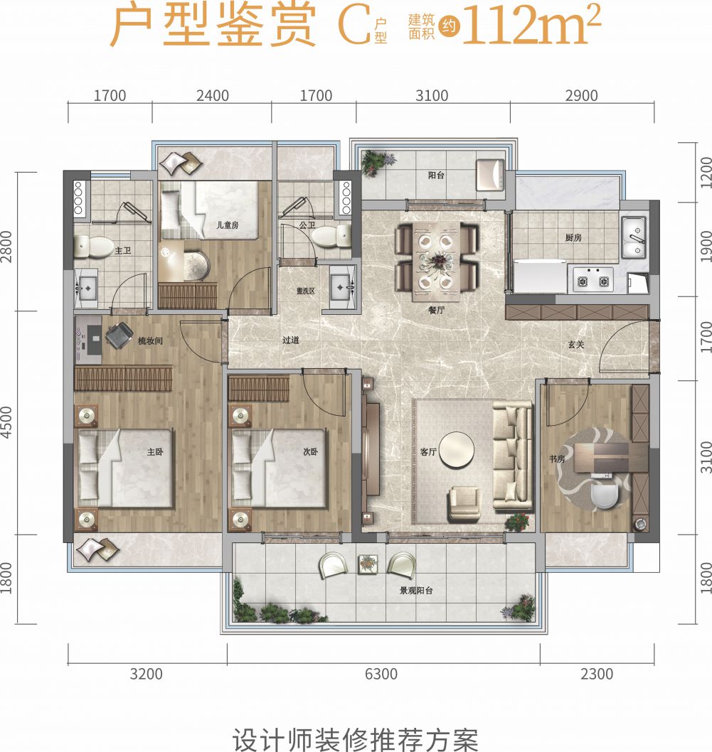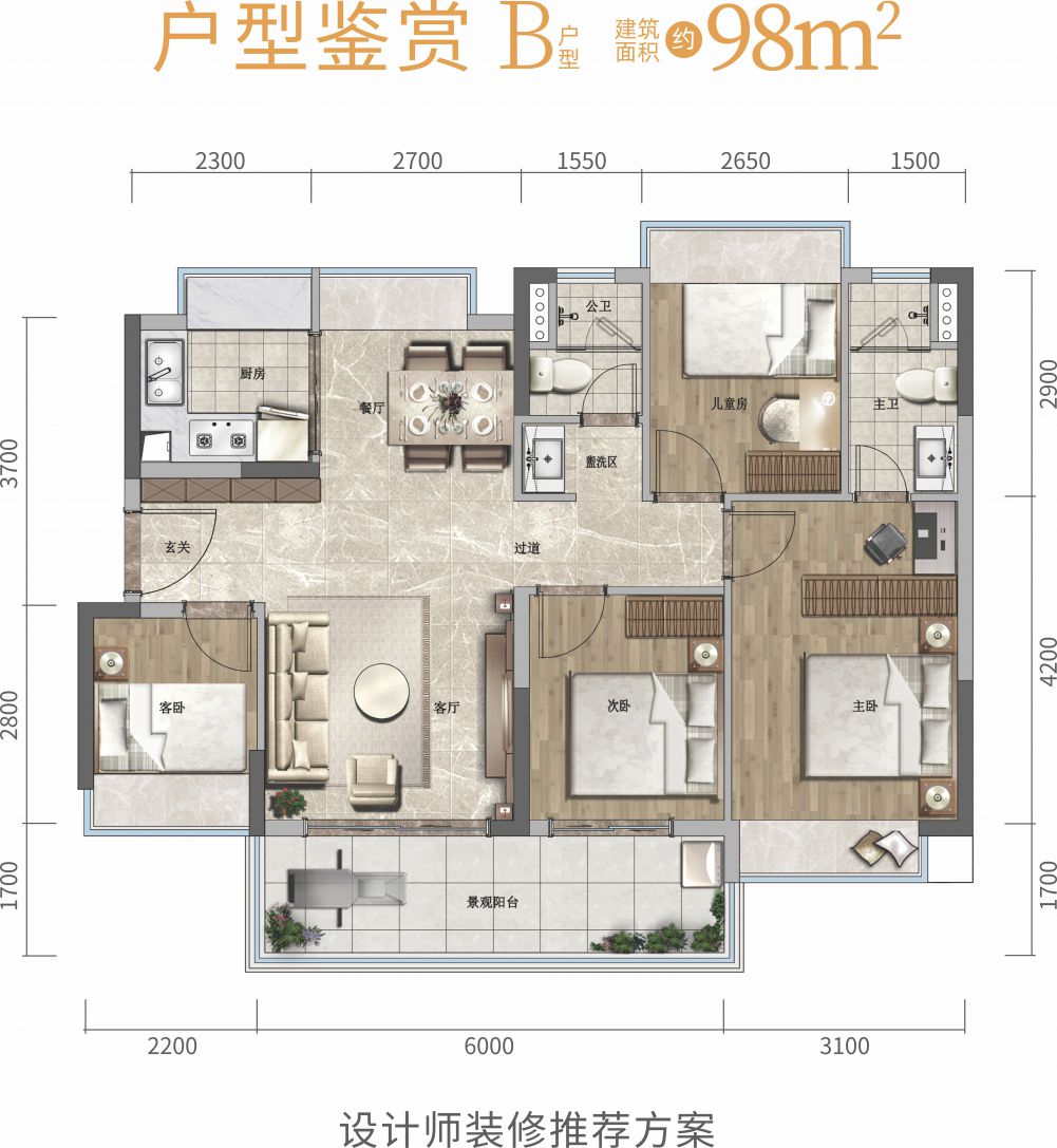 住宅产品:约86㎡4房、98㎡4房、112㎡4房