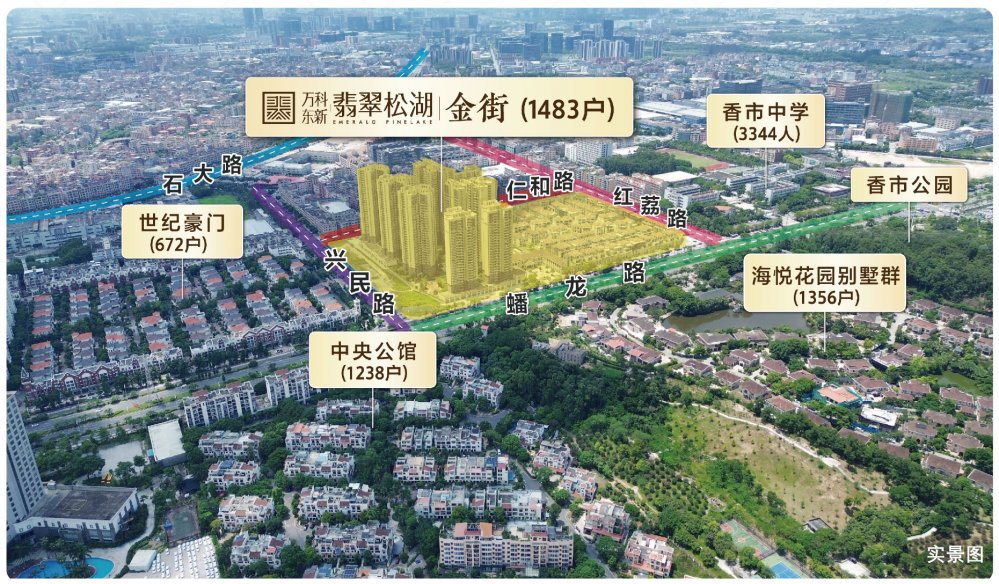 项目位于寮步蟠龙路与兴民路交汇处,周边4大别墅区,约1万高端消费人群,是名副其实的富人区。