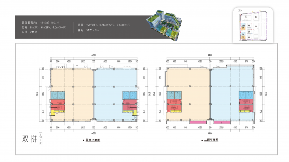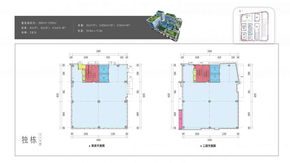 高端产品:1080-2510㎡高赠送退台式厂房,2420-4900㎡商务级企业总部
